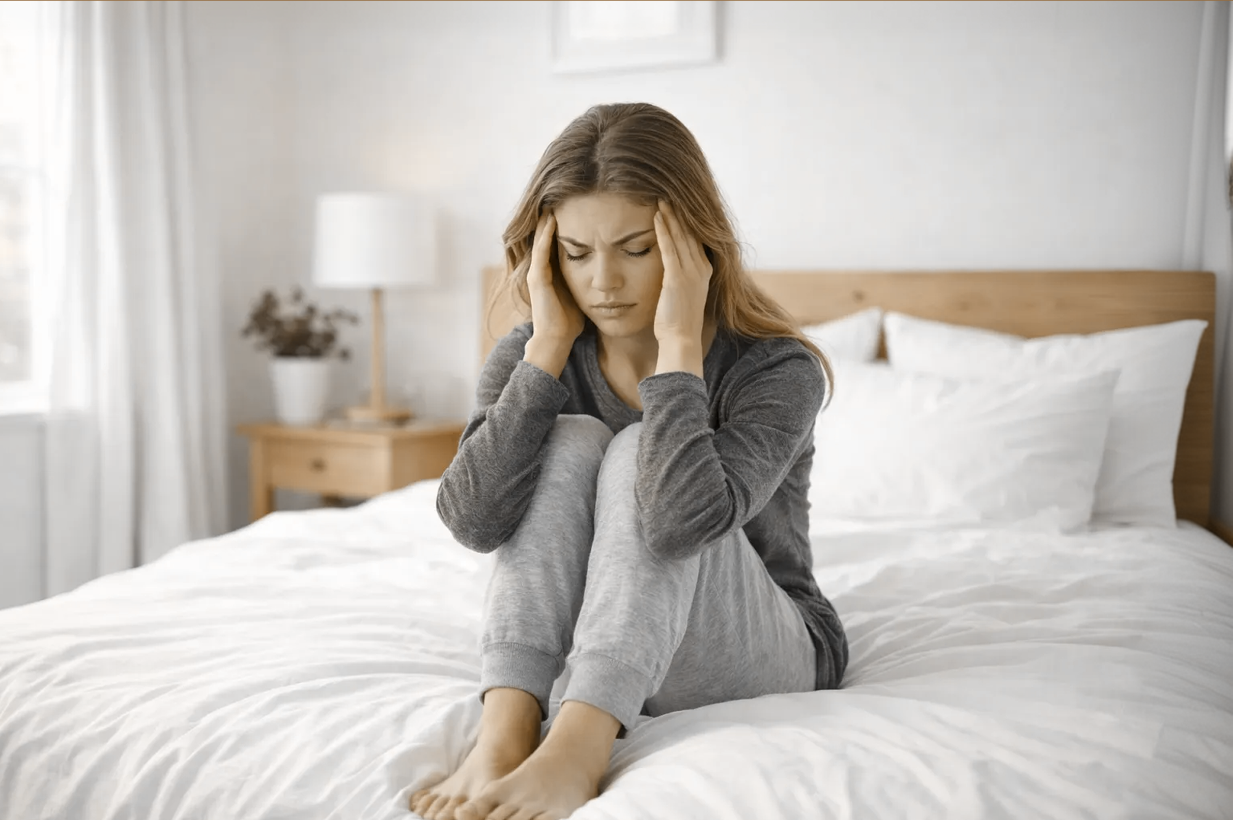 1. Проблемы со сном. Сложно уснуть из-за потока мыслей, частые пробуждения среди ночи или чувство разбитости утром, даже если спали достаточно.